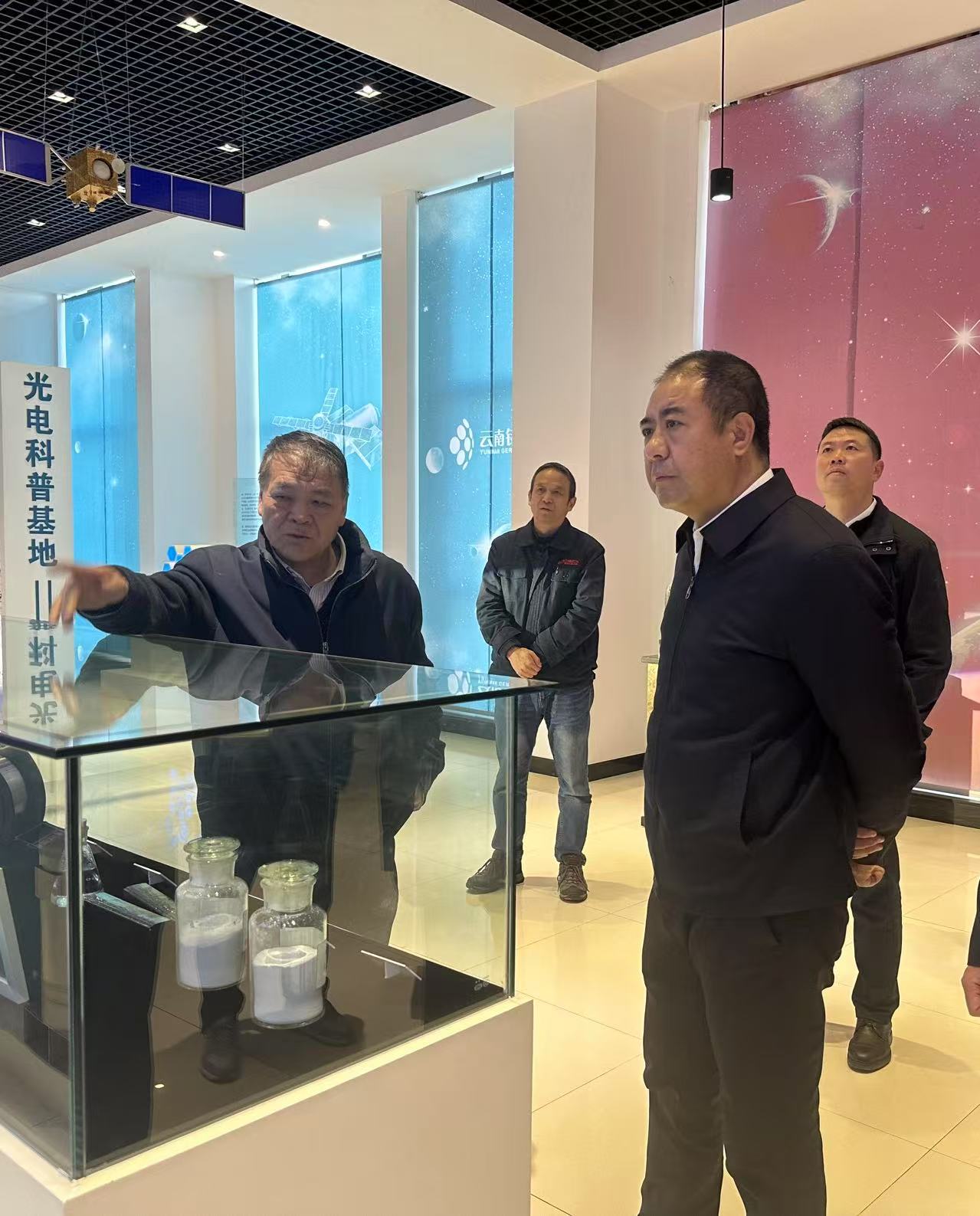 2023年7月25日,云南省委軍民融合辦副主任、省國防科工局局長姚翔一行到云南鍺業(yè)調(diào)研指導(dǎo)。